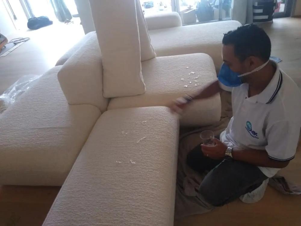 Aplicação de produto que protege as fibras contra a penetração de líquidos, sujeira e o desgaste do uso diário.